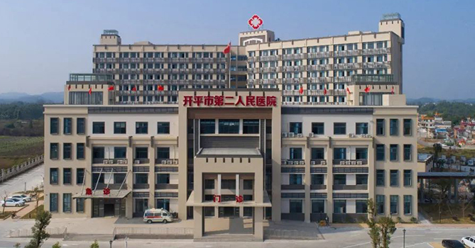 廣東江門開平市第二人民醫院成立于1951年,是一所集醫療、預防、保健、教學和科研于一體的綜合性二級公立醫院。2017被納入年廣東省粵東西北地區中心衛生院升級建設項目47家單位之一,新院區已于2019年12月30日建成投入使用。