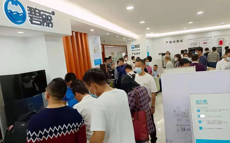 前來參觀的客戶對碧麗租賃系列產品、帶杯控技術的幼兒園溫開水飲水設備、高端Q8系列等產品十分感興趣,把碧麗產品體驗區圍了個水泄不通,碧麗營銷精英滿場跑地為客戶講解產品,場面熱鬧得很。