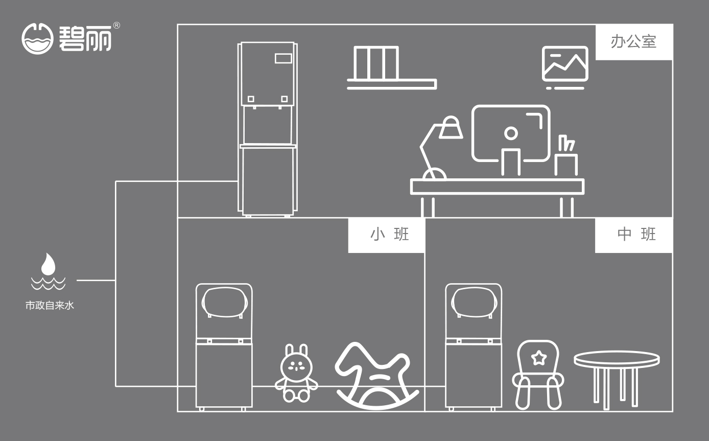 不同的飲水點可根據實際使用情況裝配飲水設備,如教師辦公室可安裝管線機或飲水設備或開水器,使用戶能喝上開水、溫開水、純凈水等,幼兒園各班可安裝專用的幼兒園飲水設備;